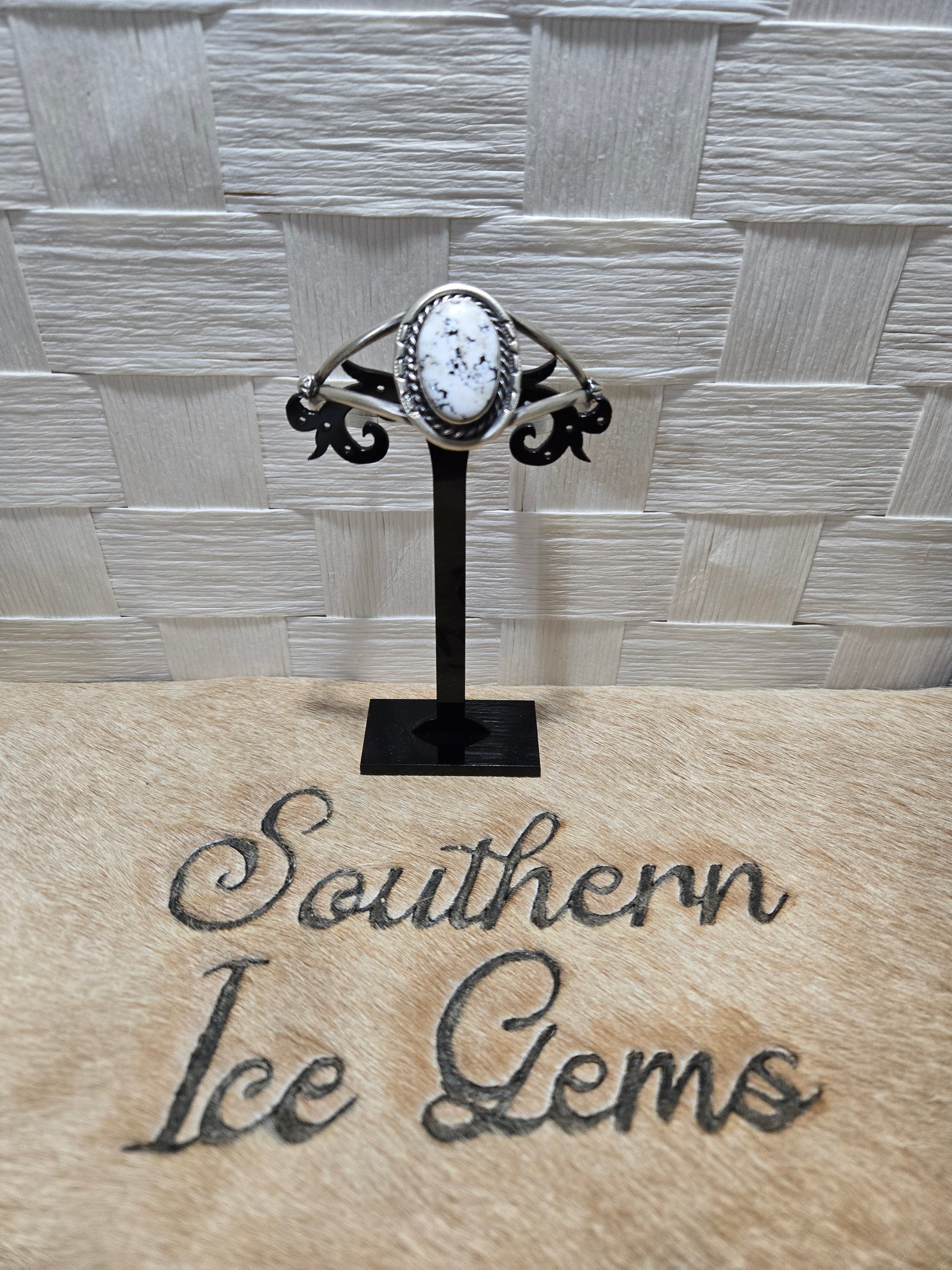43 Native Artist Stamped AL White Buffalo Cuff sz 7