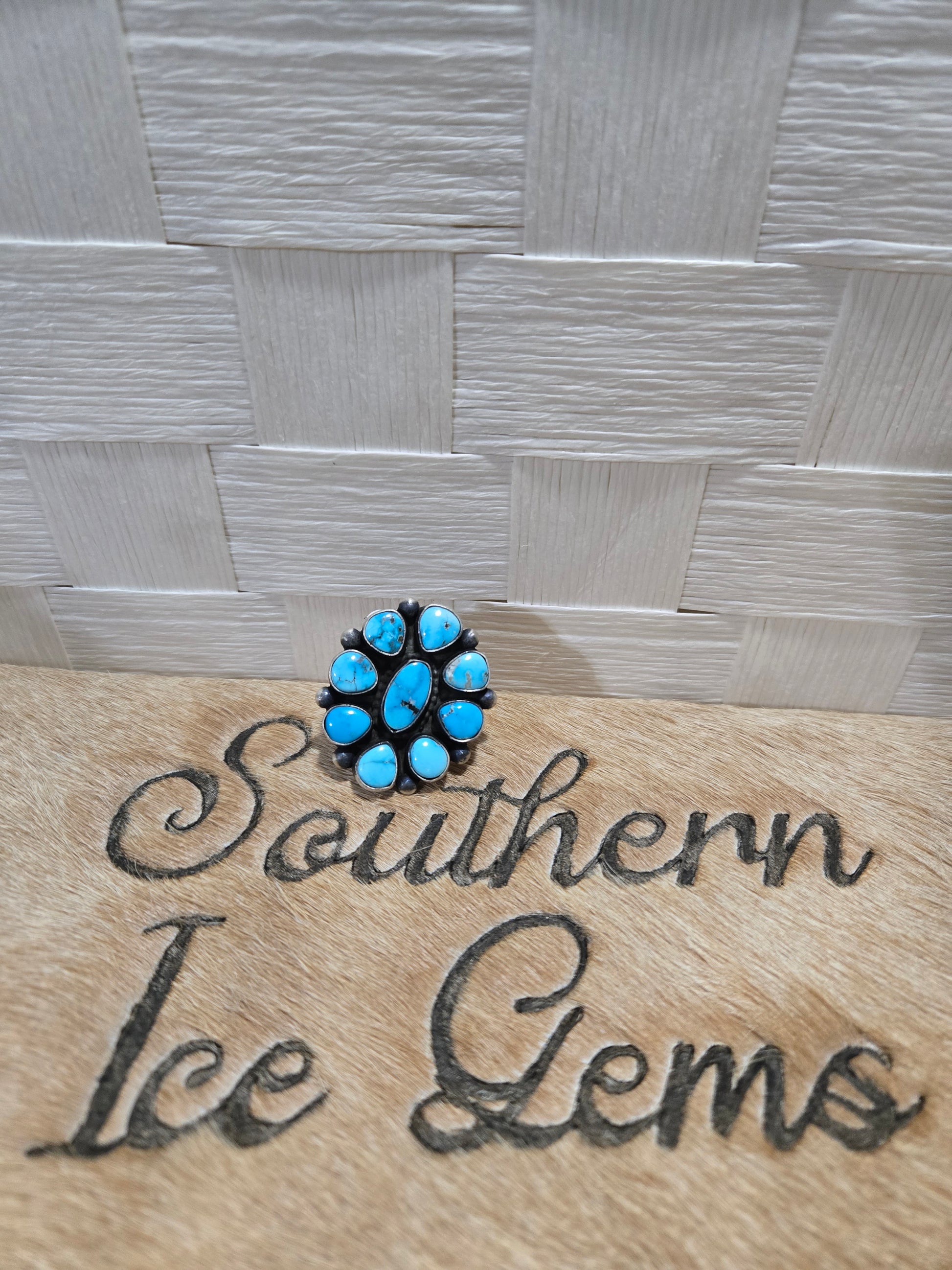 86 Native Artist Stamped Timothy Yazzie Kingman Turquoise Ring Sz 8.50