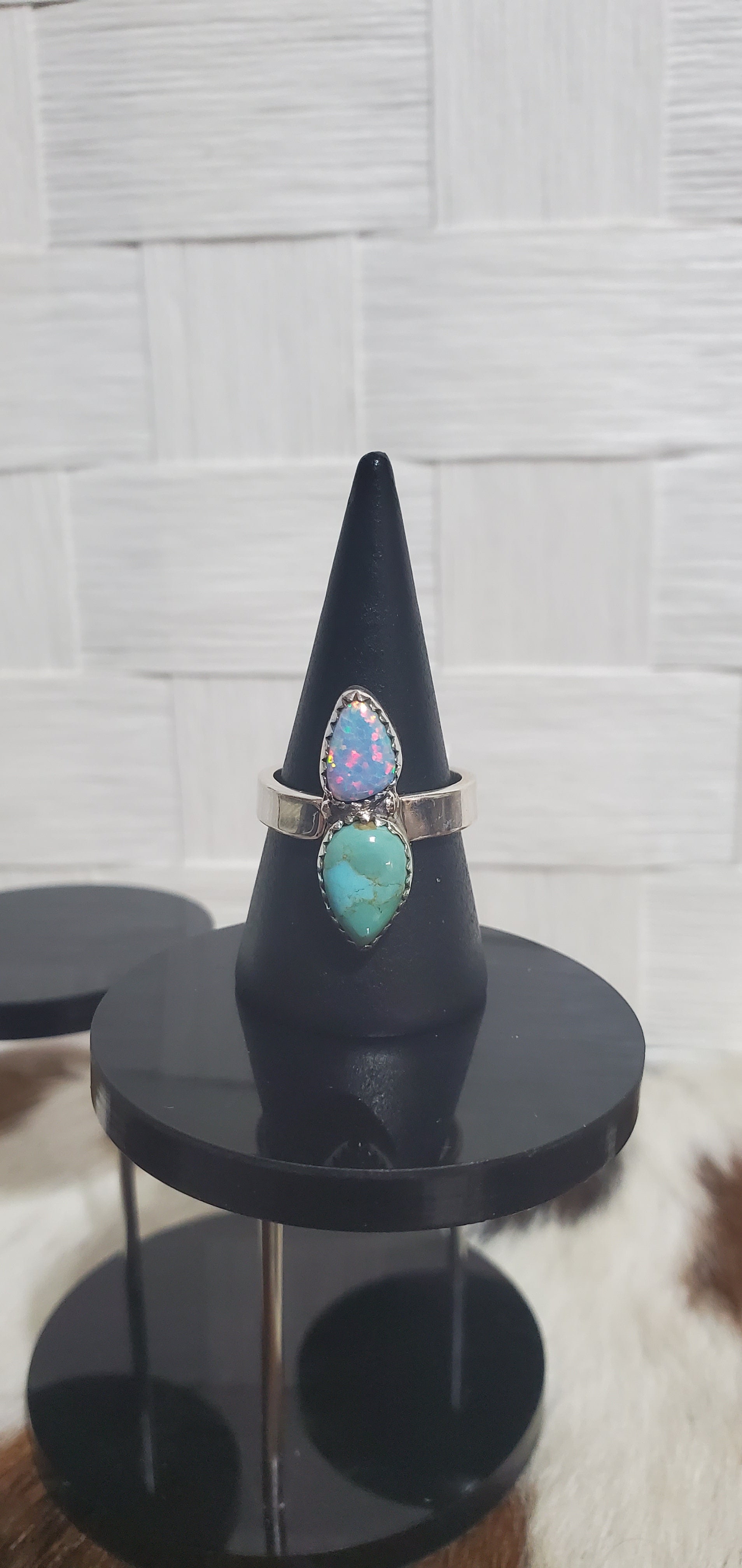 925 Turquoise and Aurora Opal Sz 8 Adjustable
